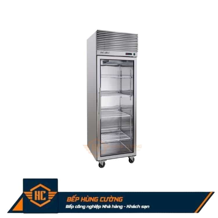 Thiết kế 1 cánh kính trong suốt kết hợp đèn LED chiếu sáng bên trong giúp sản phẩm không chỉ bảo quản thực phẩm hiệu quả mà còn tạo điểm nhấn thẩm mỹ, thu hút ánh nhìn của khách hàng. Tủ được sản xuất với chất liệu inox cao cấp, kính cường lực 2 lớp, và tích hợp các tính năng thông minh như bảng điều khiển Dixell, sấy kính chống đọng sương, mang đến trải nghiệm sử dụng vượt trội.